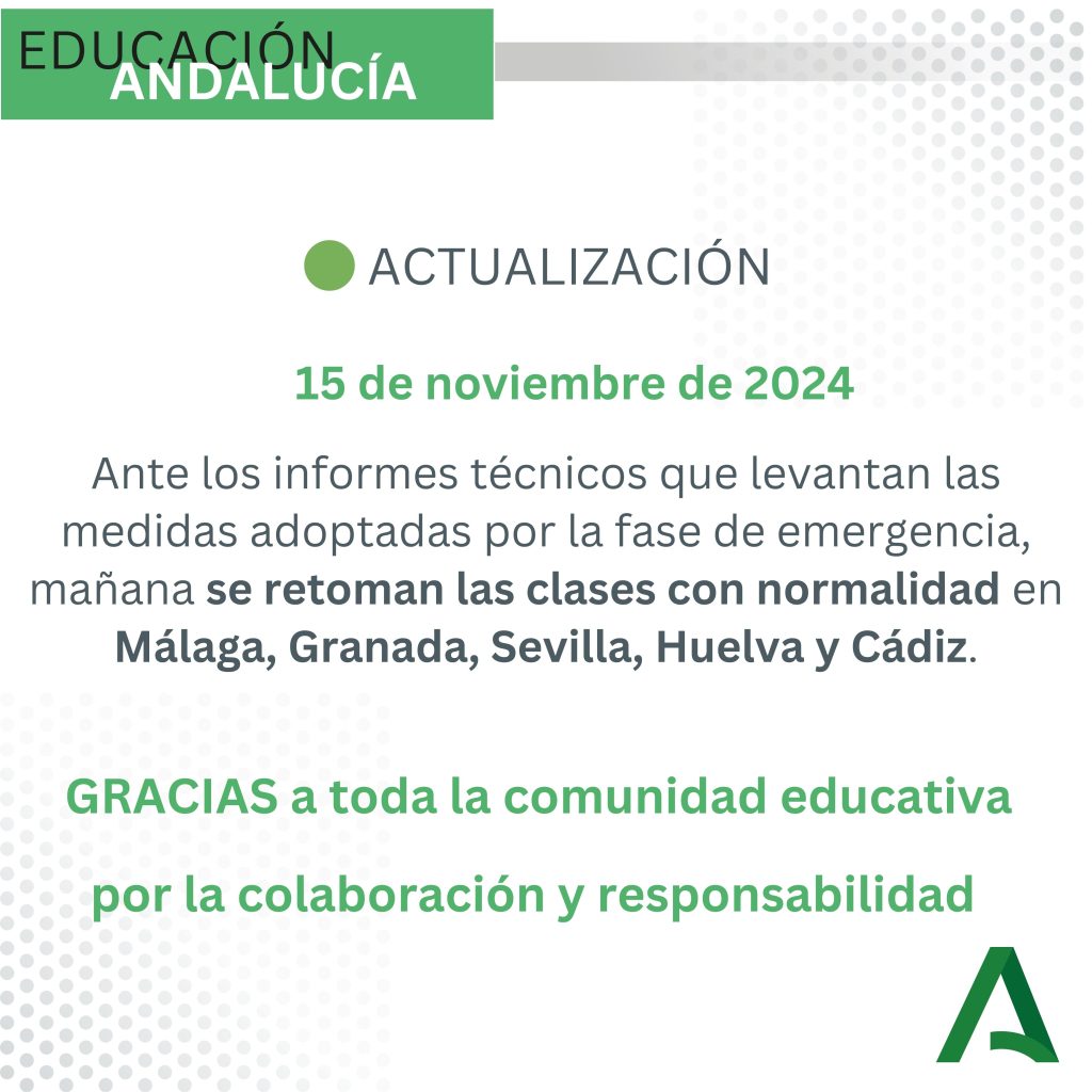 El día de mañana, 15 de noviembre, se retoman las clases con total normalidad.